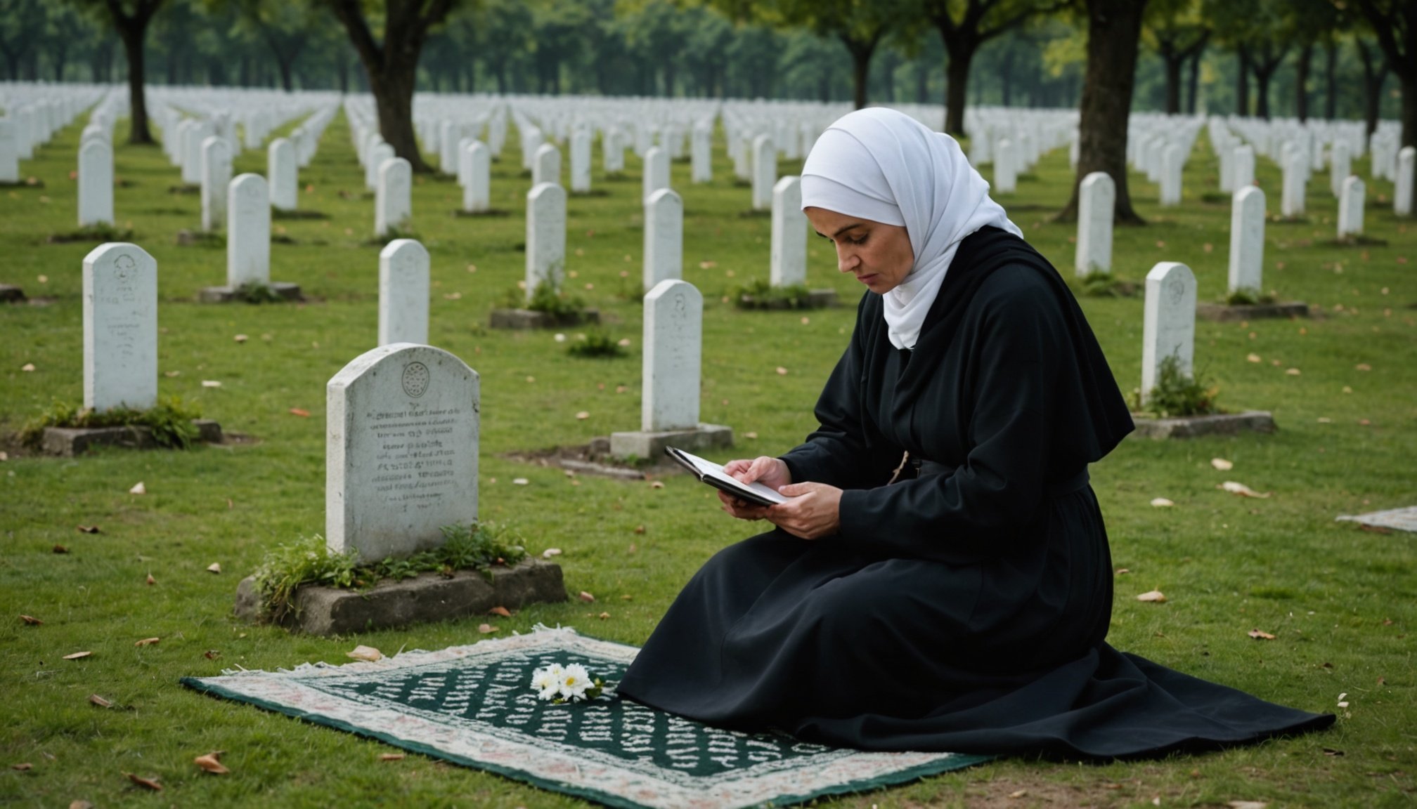 Hommage et recueillement sur la pierre tombale musulmane